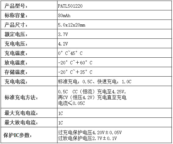 PATL501220蓝牙耳机电池方案
